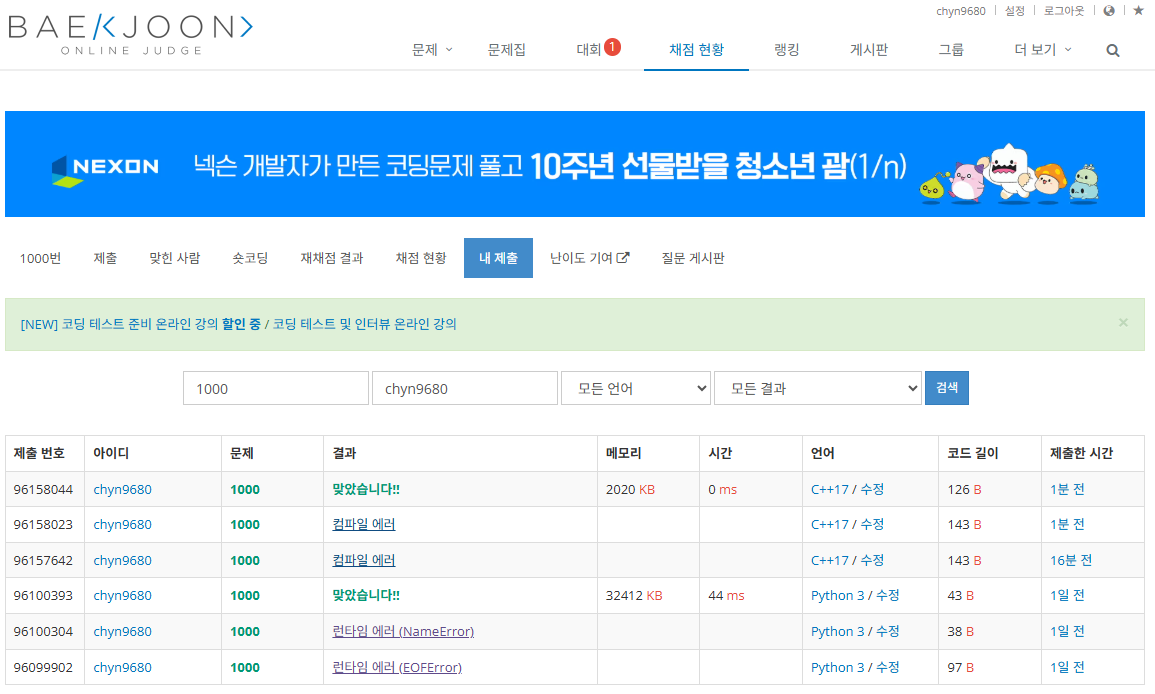 A+B 대신 A + B로 띄어쓰기를 하니 맞았다고 하였다. 왜 그런지는 잘 모르겠다. C++은 띄어쓰기도 주의해야 한다.