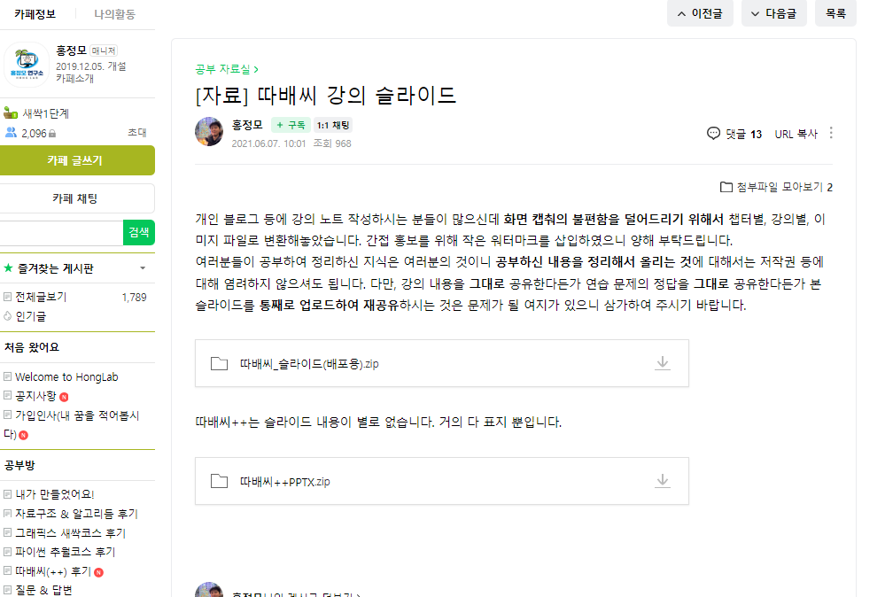 네이버 카페에서 자료를 받을 수 있다는 걸 알았고, 찾아보았습니다.